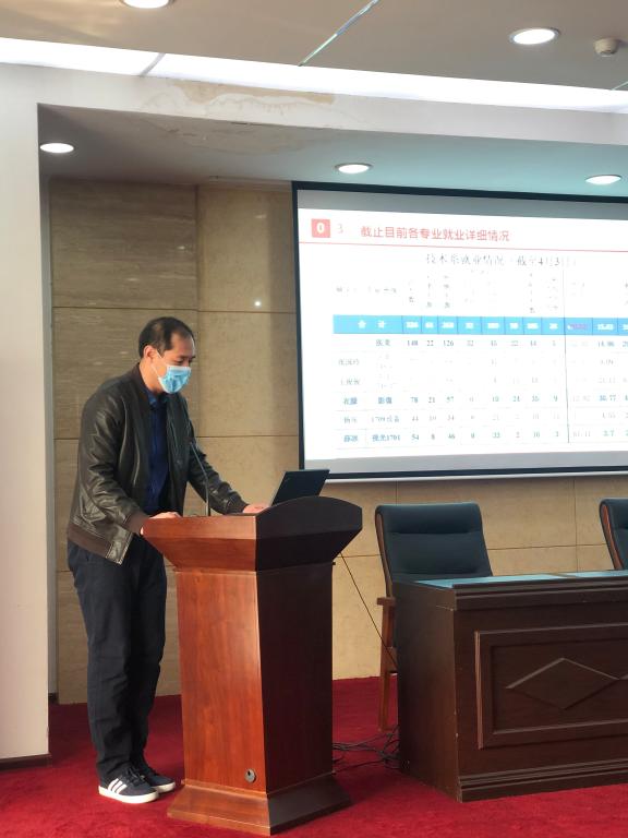 張彥文校長在講話中首先肯定了各系和相關職能部門在就業工作中付出的辛苦和努力,對大家表示感謝。同時要求大家認真分析就業的嚴峻形勢,面對疫情的影響,高職學生仍然有自己的“市場”,大家要加強學習,將“如何應對就業形勢”與人才培養質量提升要緊密聯系起來。各部門要主動出擊,主動去搜集就業信息,將用人單位與學生做好對接,還要強化就業服務和對畢業生的關注,帶著激情和熱情去下功夫,扎實做好就業工作。