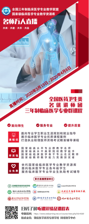 據悉,這堂“名師在線直播課”,是全國三年制臨床醫學專業教學聯盟為了落實教育部提出的疫情防控期間“停課不停學”要求,進一步加強臨床醫學專業資源庫的建設與應用,開展的“名優講師團在線直播課”活動。活動從聯盟院校中精心遴選出10位優秀教學名師,先后推出基礎與臨床課程的直播課。楊旭老師曾在天津醫學高等專科學校領導專家的指導下,在天津市教學能力大賽中獲獎,所以被推選為本次直播課的主講。
