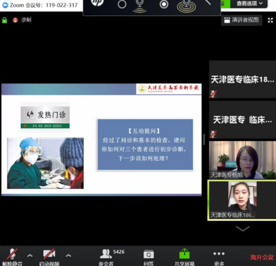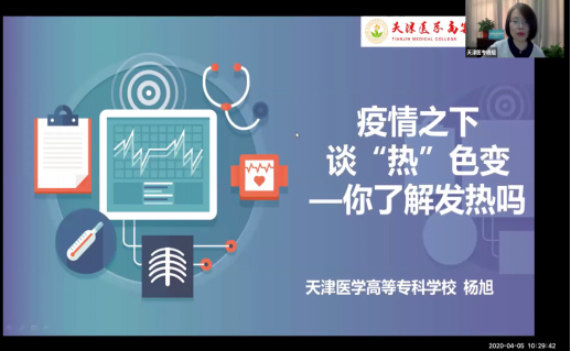 2020年4月5日上午,天津醫專舉辦了一場創新形式的網絡直播講座。醫學系診斷學教研室負責人楊旭老師,激情開講《疫情之下,談“熱”色變——你了解發熱嗎?》。“疫情期間,發熱真的那么可怕嗎?我們應該如何正確的應對發熱?作為醫生,接診到不同發熱病人,我們應該如何按圖索驥,層層破解病因?”本次講座,內容引人入勝,形式豐富新穎,吸引了全國十余所高職醫學院校的5000余名學生共同在線參與,直播間互動交流氣氛熱烈。
