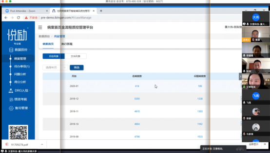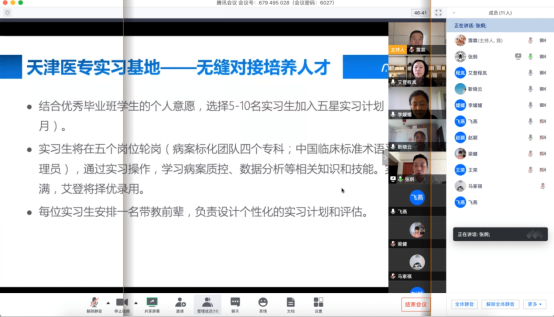 2020年4月8日,公衛系衛生信息管理專業與北京艾登科技有限公司成功舉辦了第一次“校企協同 合作育人”線上交流會。公衛系副主任李媛媛、教務處實踐教學科趙穎、公衛系孟繁興,公衛系衛生事業管理教研室陳飛燕以及北京艾登科技有限公司CEO程嵐、市場部總監張炯、咨詢部總監梁建、編碼經理馬家祺、編碼員靳曉云和王榮等6位高層代表參加了此次會議。
