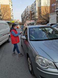 在這個非常時期,本著“不漏一戶、不漏一人”的嚴謹精神,王曉宇跟隨社區工作人員一起挨個樓棟宣傳防疫手段和自我防護的重要性。在小區門口測量體溫,對出入人員進行登記,即使在寒冷的天氣,她帶著手套穿著棉鞋用凍僵的雙手為來往人員進行登記,為居民建起一道安全防線。