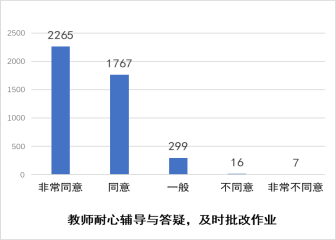 強互動環節,調動了學習興趣;認為教師耐心進行線上輔導與答疑,及時批改課后作業的學生占比為92.6%。
