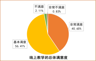 為進一步掌握教師教學和學生學習情況,及時調整教學方式,改進教學方法,提升教學質量,教務處于3月17日—3月19日統一組織學生開展線上教學質量評價與反饋,通過教學質量管理平臺發放問卷調查形式開展,覆蓋2018級、2019級各專業學生。本次調研回收問卷4354份,學生參評率達85.3%,充分收集學生的反饋與評價意見,經統計分析,學生對線上教學工作滿意度較高,線上自主學習情況較好。