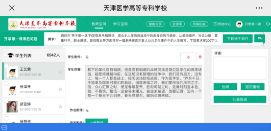 本次課程在學生中引起了強烈反響,同學們通過職教云課程平臺積極互動,近7000名學生提交了觀看“第一課”的感受和體會,大家紛紛表示通過這場沒有硝煙的戰爭更加深刻地認識和理解中國特色社會主義的制度優勢,感受到在黨中央堅強領導下,全國人民萬眾一心的努力,感謝學校、感謝各位老師的諄諄教誨和付出,在共抗疫情期間也絕不會松懈,合理制訂好學習計劃,做到積極、主動和自覺,按時完成學習任務,不斷提升知識能力水平,今后為“健康中國”建設作出貢獻。