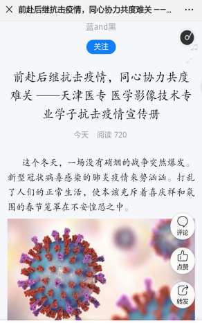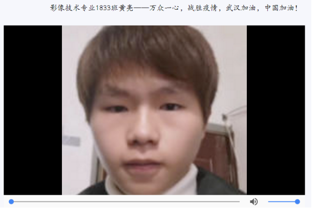 逆行的人群中,有那么多的熟悉面孔,有那么多的醫專人奔赴一線,治病救人,呵護生命。醫學影像技術專業教師任津瑤、輔導員葛超老師聯合醫學影像技術專業學生制作視頻——“祝所有前線醫護人員平安,抗擊疫情成功”,“武漢加油,中國加油!”這是醫者仁心,更是匠心傳承;這是樂觀團結,更是相信明天!武漢加油!中國加油!