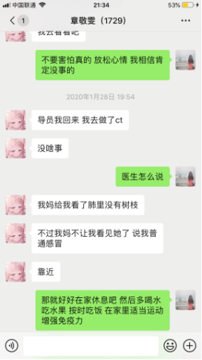 疫情無情,人有情,這是這個寒冷的冬天留存的溫度。在過去的將近二十多天的時間里,輔導員每天不是在打電話,就是在發微信,要么就是在QQ群或者微信群里一遍又一遍的詢問“某某某,你還咳嗽么?”“某某某,還發燒么?”“大家一定盡量少出門,不聚會,在沒有學校的通知的情況下,不私自提前返校”,這就是2020年這個春節輔導員們的日常,逐個了解每一位學生的動向和身體狀況成為了這些日子里輔導員老師們最為關注的事情。為了讓更多的家長理解并配合我們的工作,輔導員老師們還寫了致家長一封信,表達關心的同時及時讓學生和家長了解疫情期間學校的相關安排。輔導員老師們還利用網絡玩起了新花樣,以宿舍為單位進行群視頻,迅速了解每一個同學的身體情況和心理狀況,及時關心,及時解答,及時疏導,為這個帶有春節的假期豐富了情懷和問候。