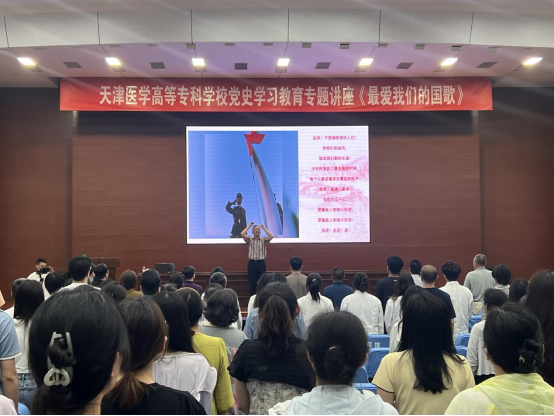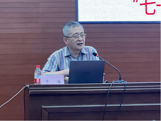 于海教授分別從國歌的概述、《義勇軍進行曲》的發展歷程、國歌崇高神圣至高無上、國歌時國家情懷的生動教材、我們的國歌是最好的國歌等五個方面來為大家進行生動的講解。
