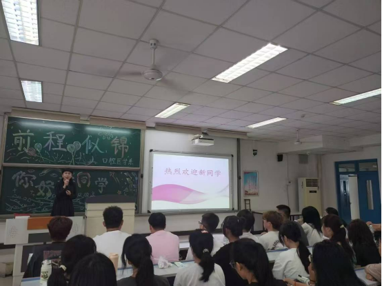 首先,醫(yī)護(hù)學(xué)院副院長(zhǎng)、科創(chuàng)處處長(zhǎng)、校企合作辦公室主任、口腔醫(yī)學(xué)系馬菲菲主任從天津醫(yī)學(xué)高等專科學(xué)校概況、口腔醫(yī)學(xué)系整體建設(shè)情況、大學(xué)生生涯規(guī)劃、就業(yè)指導(dǎo)等方面向同學(xué)們介紹了百年醫(yī)專辦學(xué)理念和嚴(yán)謹(jǐn)、求實(shí)、創(chuàng)新、奉獻(xiàn)的校訓(xùn)。馬主任強(qiáng)調(diào),大學(xué)是同學(xué)們?nèi)松贸痰闹匾A站,同學(xué)們要珍惜大學(xué)美好時(shí)光,重視培養(yǎng)人文情懷、溝通能力、科研創(chuàng)新能力,要在校學(xué)習(xí)期間做好生涯規(guī)劃,養(yǎng)成終身學(xué)習(xí)的習(xí)慣,讓“專業(yè)教育”與“職業(yè)教育”完美結(jié)合,祝愿每一位新生能在學(xué)校收獲滿滿的知識(shí)與成長(zhǎng),成為對(duì)社會(huì)有用的人才。
