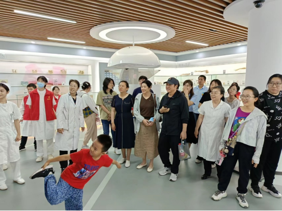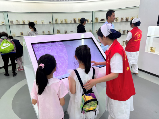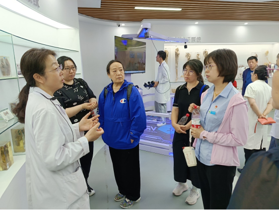 接著大家來到智慧教學中心,參觀人體胚胎、器官正常的及病變的實體標本,體驗“人體3D動作捕捉互動系統”。先由學生講解員講解人體胚胎及器官的正常標本,接著趙春歌老師就大家關注的多發病,如高血壓、糖尿病、肺炎、乳腺癌、胃癌、肝硬化等疾病的器官病變進行了重點講解,對一些疾病知識盲區和誤區向大家進行詳細的普及。內容深入淺出,通俗易懂,居民收獲了滿滿的健康知識,同時對如何保持健康有了更清晰的認識。大家參觀的同時拋出了許多困擾健康的問題,趙老師耐心解答居民的疑惑,并分享防治措施。