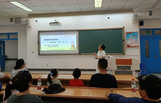 約10點居民走進教室有序落座,眼健康科普講座正式開始。首先基礎醫學部張承玉主任上臺介紹活動意義,歡迎社區居民朋友的到來。沈教授拋出“全國愛眼日是幾月幾日”、“愛眼日活動的主題是什么”等幾個問題展開題為“全民愛眼,共筑‘睛’彩”的眼健康科普講座,介紹了“十四五”全國眼健康規劃(2021—2025年)中的三個堅持和兩個重點,展示了國家堅持預防為主防治結合,對于兩大重點人群即兒童青少年和老年患者分別患有近視和白內障等眼健康問題的重視,講解國家做出的規劃和政策,讓眼健康知識深入人心,也引出講座的主要內容。