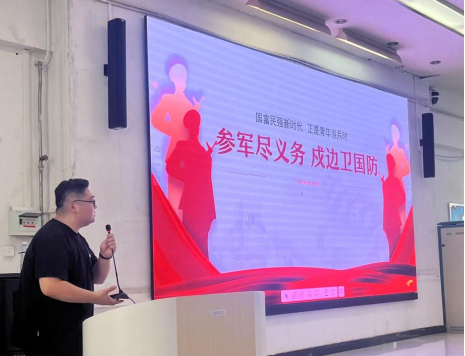 參軍報國,不負韶華;莘莘學子,攜筆從戎,輔導員黃煒老師向同學們詳細宣傳并講解了大學生入伍的政策,他從大學生應征入伍的條件、應征報名的流程、參軍優待政策、我校歷年大學生參軍入伍情況等幾方面,叮囑同學們增強國防意識、自覺弘揚愛國精神,激發報國之志。