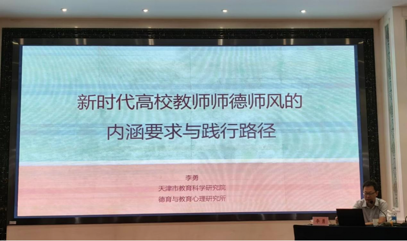天津市教育科學研究院德育與教育心理研究所李勇所長以《新時代高校教師師德師風的內涵要求與踐行路徑》為題,全面解讀師德師風,涵蓋政策、案例及心理思政提升路徑,促進教師師德涵養提升。醫學護理學院苑晶晶副教授以《揚工匠精神展技能風采》為題,分享技能比賽輔導及參賽感悟,參賽導師要慧眼識才,因材施教;選手需勤學苦練,創新求精。教師工作部副部長王文潔教授,以《藥物檢測類課程線上線下混合式教學設計與實踐》為題,介紹課程建設歷程、線上線下混合式教學模式改革實踐,分享教學模式改革中的經驗收獲及反思。