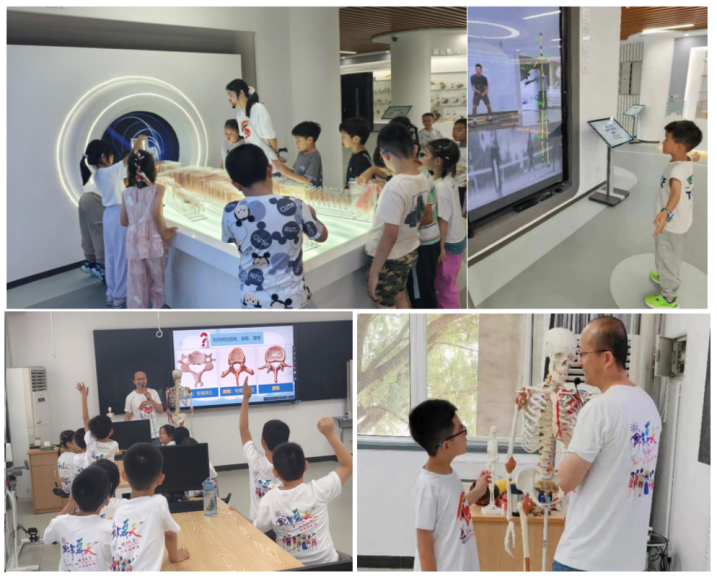 在我校智慧教學中心,趙嘉欣老師帶領學員們通過人體標本、智能互動裝置和VR人體漫游系統,讓同學們科學認識和領略身體的奧妙所在;華超老師展示了一項醫學秘技—“識骨認肌”,孩子們相互協作,拼出了人體骨拼圖。