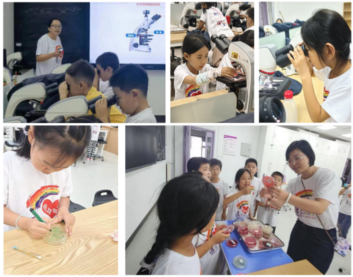 在王麗老師的指導下,同學們學習了顯微鏡的使用方法并制作了洋蔥表皮切片,并鼓勵學員們制作自己感興趣的各種植物、生物標本進行觀察;在蔣琪老師的課程中,同學們了解常見的細菌和微生物在自然界與人體的分布情況,并舉一反三理解養成良好衛生習慣的重要性。