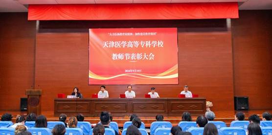 金色的九月丹桂飄香,在這滿載收獲和喜悅的初秋時節(jié),我們迎來了第四十個教師節(jié)。9月10日下午我校召開天津醫(yī)學高等專科學校第四十屆教師節(jié)表彰大會,學校黨委書記陳振鋒同志、校長張彥文同志、副校長郝建軍同志、黨委副書記、副校長左紅同志、副校長王慶同志出席大會。大會由黨委副書記、副校長左紅同志主持,全校教職員工、各教學實習基地嘉賓以及學生代表共三百余人參會。