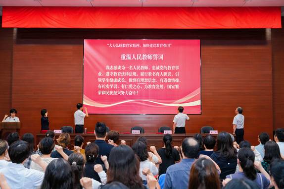會議最后,為進一步加強師德師風建設(shè),弘揚尊師重教正能量,增強全校教師的責任感和使命感,全體教職工莊嚴宣誓,重溫“人民教師誓詞”。