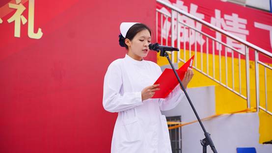 入學宣誓環節,黨委學生工作部岳香君老師領誓,全體新生莊嚴宣誓,表示將努力學習,為我國醫療衛生事業貢獻力量。