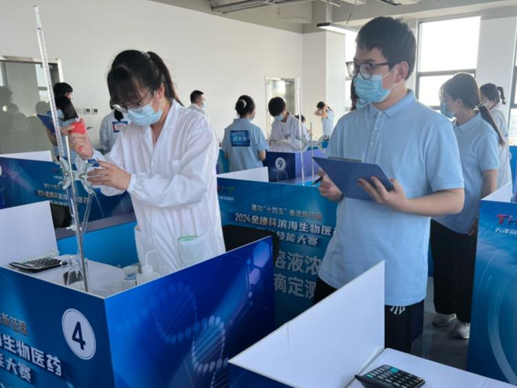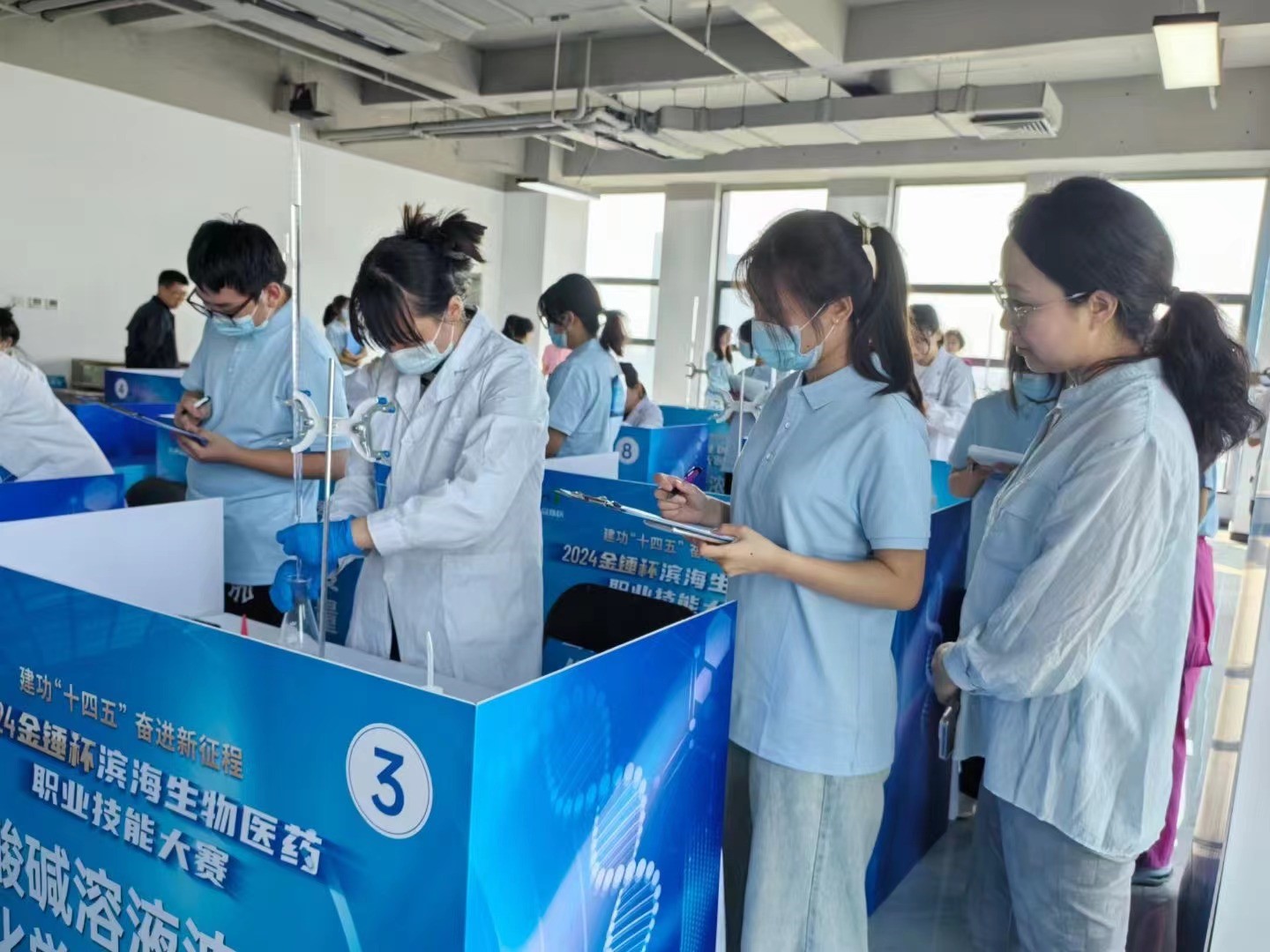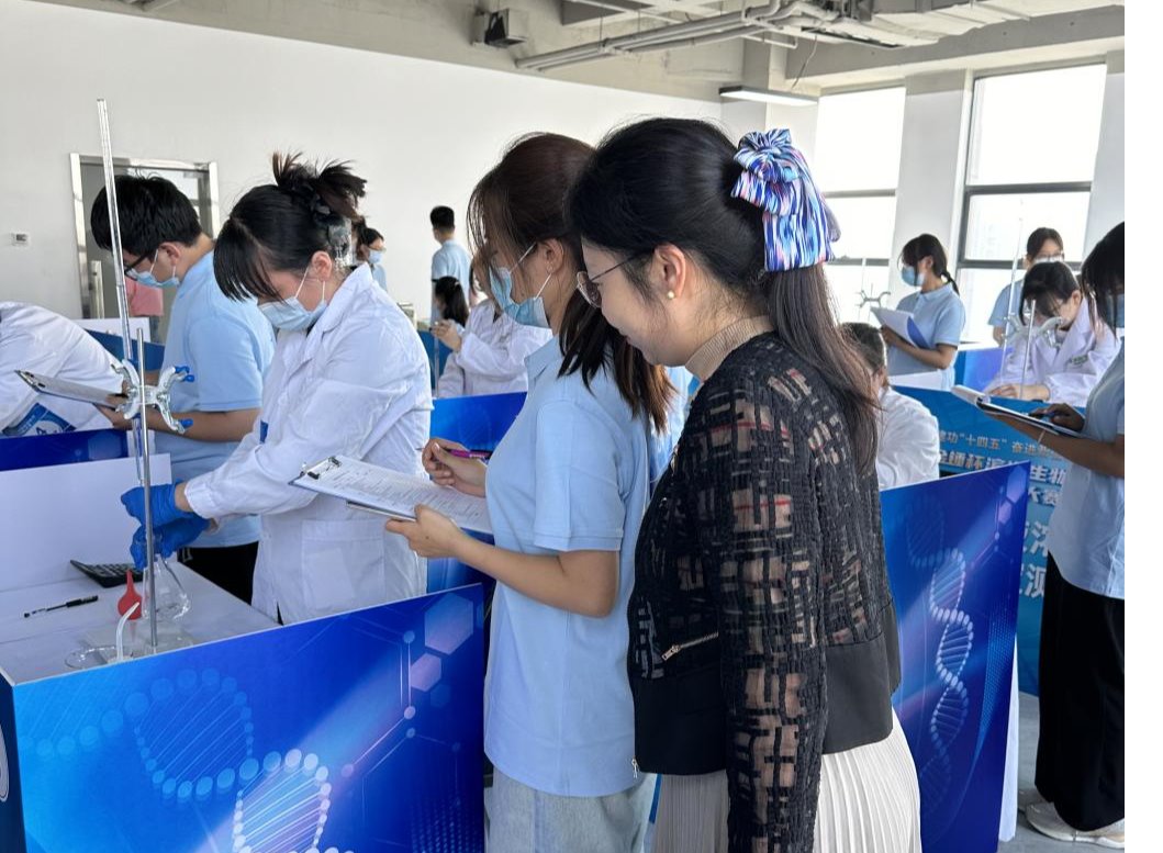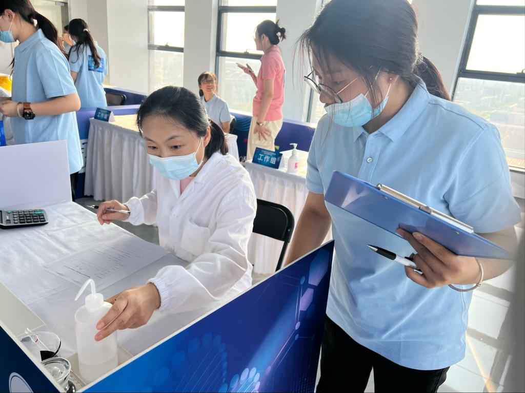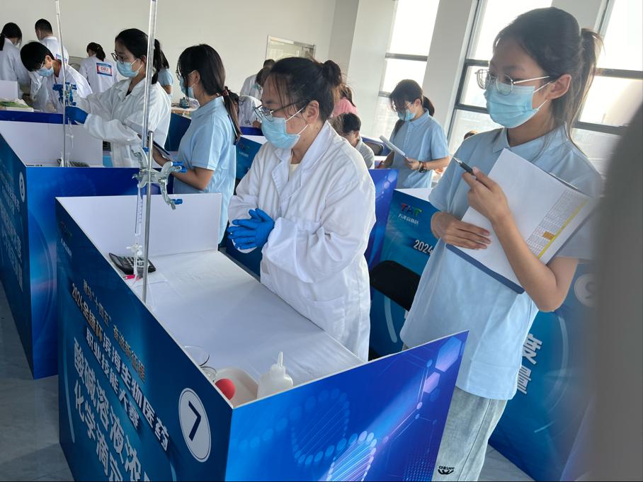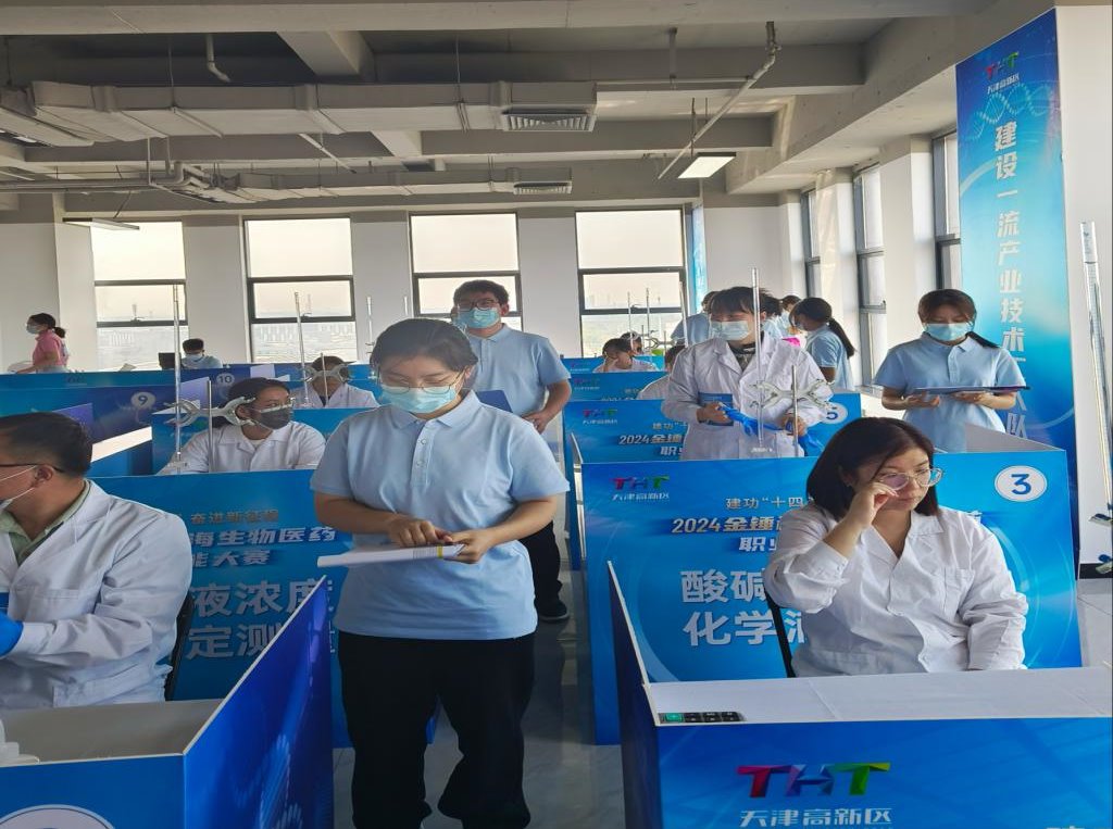“建功‘十四五’ 奮進新征程”,助力濱海新區生物醫藥產業技能人才的培養和集聚,由天津市濱海新區總工會、天津市濱海新區人力資源和社會保障局等主辦,天津金域醫學檢驗實驗室有限公司、天津醫學高等專科學校協辦,2024年“金錘杯”濱海生物醫藥職業技能大賽于9月24日在天津金域醫學檢驗實驗室有限公司舉行,我院23級金域檢驗產業學院14名同學積極參與擔任大賽中酸堿溶液濃度化學滴定測量裁判員。賽前針對賽項規程、評分標準、實驗準備等環節,學院高度重視,劉芳院長、郭麗香副院長、李彩云老師、楊樂老師多次組織學生,就比賽各個細節對學生開展培訓。學生通過大賽項目籌備工作、裁判員工作將所學知識進一步和專業實踐結合起來,不僅增加對專業技能的熟悉程度,也錘煉了作為醫學檢驗技術人員嚴謹求實的工作作風。