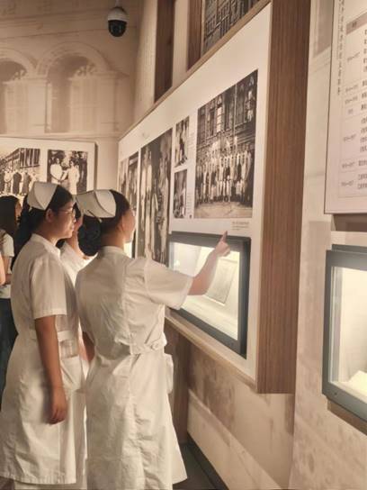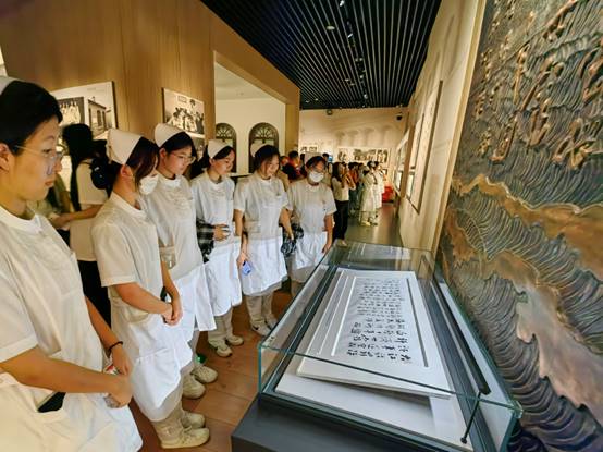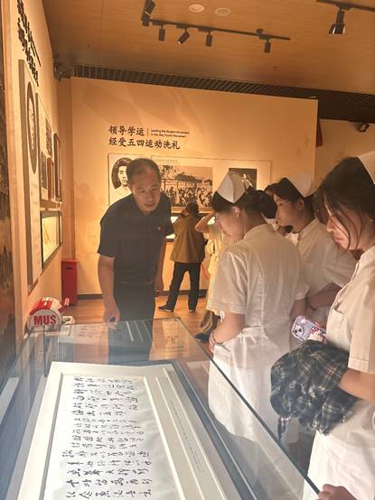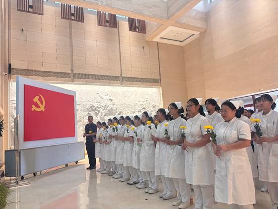 活動當天,陽光明媚,師生們懷著無比崇敬的心情,踏入了這座承載著深厚歷史記憶的紀念館。在莊嚴肅穆的氛圍中,護理系書記商其杰首先發表了激情澎湃的宣講,他的話語鏗鏘有力,激勵著在場的每一個人。隨后,在學生代表姚嘉寧的帶領下,全體學生莊嚴地重溫了醫學生誓詞。那鏗鏘有力的誓言“健康所系,性命相托…”,不僅是對醫學事業的莊重承諾,更是全體醫學生對黨、對人民、對國家的忠誠與決心的體現。