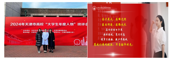 在天津外國(guó)語(yǔ)大學(xué)舉辦的“天津市大學(xué)生年度人物”終評(píng)會(huì)上,李潤(rùn)穎同學(xué)圍繞自我學(xué)習(xí)、專(zhuān)業(yè)學(xué)習(xí)、比賽成果和志愿服務(wù)四個(gè)方面進(jìn)行了詳細(xì)匯報(bào)并深受好評(píng)。李潤(rùn)穎同學(xué)刻苦學(xué)習(xí)專(zhuān)業(yè)知識(shí),學(xué)習(xí)成績(jī)穩(wěn)居年級(jí)第一,并在加拿大阿爾伯塔大學(xué)厲良教授指導(dǎo)下深入開(kāi)展學(xué)術(shù)研究,近年來(lái),榮獲第九屆“互聯(lián)網(wǎng)+”銀獎(jiǎng)、第九屆全國(guó)大學(xué)生基礎(chǔ)醫(yī)學(xué)創(chuàng)新研究銀獎(jiǎng)、全國(guó)大學(xué)生創(chuàng)新實(shí)驗(yàn)設(shè)計(jì)大賽省部級(jí)一等獎(jiǎng),以及2024年“挑戰(zhàn)杯”省部級(jí)銅獎(jiǎng)等多項(xiàng)榮譽(yù)。作為一名中共預(yù)備黨員、學(xué)生干部,李潤(rùn)穎同學(xué)積極承擔(dān)輔導(dǎo)員助理、校辯論隊(duì)隊(duì)長(zhǎng)、生物社社長(zhǎng)、KAB大學(xué)生創(chuàng)新創(chuàng)業(yè)俱樂(lè)部社長(zhǎng)以及天津醫(yī)專(zhuān)質(zhì)譜實(shí)驗(yàn)室微信平臺(tái)負(fù)責(zé)人等職務(wù),不斷提高自身組織領(lǐng)導(dǎo)及溝通協(xié)調(diào)能力。李潤(rùn)穎同學(xué)積極追求德智體美勞全面發(fā)展,連續(xù)兩年參加天津市大學(xué)生思政辯論賽并獲得“優(yōu)秀辯手”稱(chēng)號(hào),在2023年天津市大學(xué)生田徑運(yùn)動(dòng)會(huì)中榮獲市級(jí)第八名。同時(shí)積極投身于志愿服務(wù)事業(yè),定期帶隊(duì)赴社區(qū)和養(yǎng)老院開(kāi)展健康知識(shí)科普等各類(lèi)志愿活動(dòng),志愿服務(wù)時(shí)長(zhǎng)達(dá)500小時(shí)。