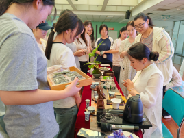 為全面貫徹落實黨的二十大和二十屆三中全會精神,弘揚中華優(yōu)秀傳統文化,豐富校園文化生活,在端午節(jié)來臨之際,醫(yī)學技術黨支部特邀“中茶”專業(yè)茶藝師進入校園,為同學們帶來一場別開生面的茶文化講座。