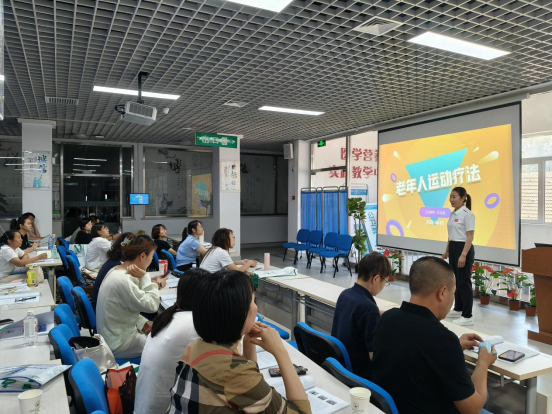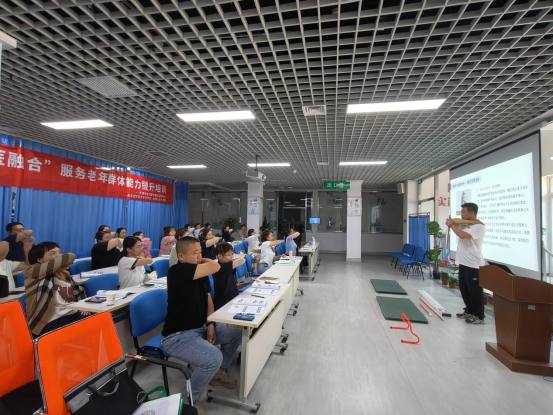 體育與公共課部齊貴軍副教授、杜金蕊副教授以“老年人身體運(yùn)動(dòng)功能動(dòng)作測(cè)試”和“老年人運(yùn)動(dòng)療法”為主題授課,通過(guò)開(kāi)展相關(guān)身體運(yùn)動(dòng)功能動(dòng)作測(cè)試,使學(xué)員們發(fā)現(xiàn)身體運(yùn)動(dòng)功能存在的薄弱環(huán)節(jié),測(cè)試出潛在的損傷風(fēng)險(xiǎn),根據(jù)測(cè)試的結(jié)果能夠有針對(duì)性地設(shè)計(jì)增強(qiáng)身體運(yùn)動(dòng)功能的方法,增強(qiáng)干預(yù)手段,提高在改善老年人身體機(jī)能、心理健康以及生活質(zhì)量等方面的能力。