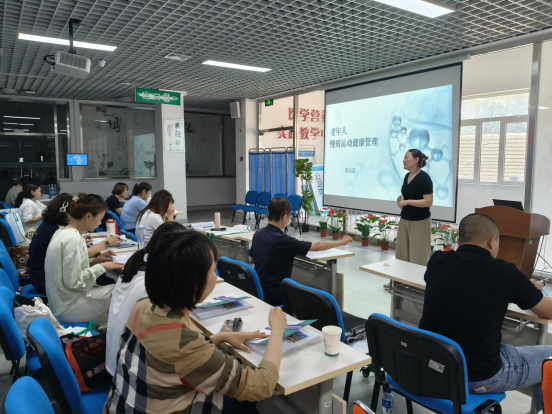 天津市職工醫(yī)院白曉明康復(fù)治療師及我校健康管理學(xué)院預(yù)防醫(yī)學(xué)教研室郭宏霞主任分別圍繞“老年人慢性病康復(fù)及運(yùn)動(dòng)處方的制定”和“老年人慢病運(yùn)動(dòng)健康管理”授課,使學(xué)員們學(xué)習(xí)到對(duì)個(gè)體或群體健康狀況以及影響健康的危險(xiǎn)因素進(jìn)行全面監(jiān)測(cè)、評(píng)估及干預(yù)的方法,用有效管理方法去改善人的健康狀態(tài)達(dá)到最大健康效益;并運(yùn)用運(yùn)動(dòng)處方技術(shù)調(diào)整或提升心肺耐力、肌肉力量、關(guān)節(jié)柔韌性、核心穩(wěn)定性等,改善和恢復(fù)病患者的運(yùn)動(dòng)能力,保持和提升常人的運(yùn)動(dòng)功能,養(yǎng)成運(yùn)動(dòng)促進(jìn)健康的生活方式。