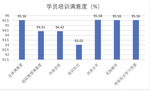 此次培訓中,學員們積極參與,技能提升成效初顯,總體滿意度為95.56%。其他組織管理、內容安排、師資水平和實踐教學方面滿意度均在95%以上。