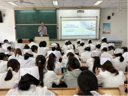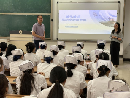 2025 年 5 月 30 日下午,我校護理黨支部聯合全國衛(wèi)生健康系統(tǒng)先進集體——天津市河東區(qū)中山門街社區(qū)衛(wèi)生服務中心,在校舉辦《善作善成 推動高質量發(fā)展》專題講座。該中心主任陳艷秋受邀主講,分享基層醫(yī)療機構卓越發(fā)展經驗,助力深化黨建合作,共育高素質護理人才。醫(yī)學護理學院黨支部書記商其杰主持活動,中山門街社區(qū)衛(wèi)生服務中心護理部校友、護理系師生黨員及學生代表等一百余人參加。
