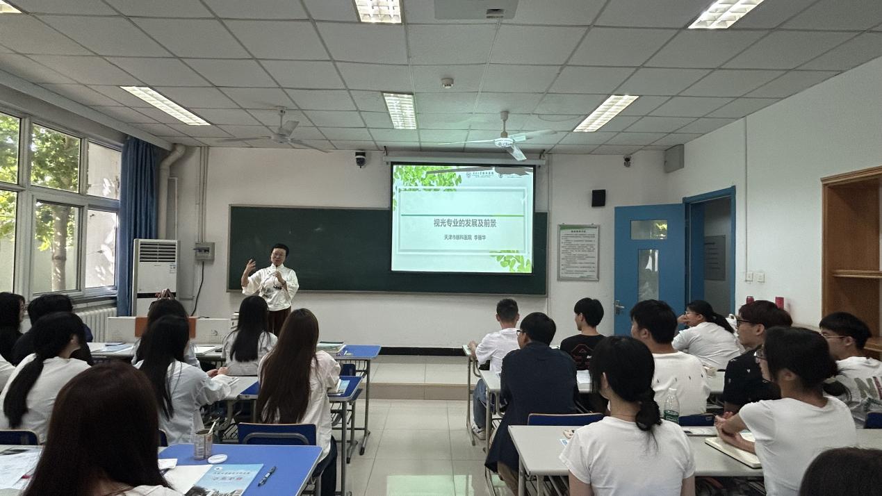 天津醫科大學眼視光學院高祥璐教授從視覺與視光學學科的內涵、專業設置、教育體系以及就業前景等多個維度進行了深入淺出的詳細講解,幫助新生們構建起對這一領域的整體認知框架。天津市眼科醫院視光中心主任李麗華則依托豐富臨床經驗,生動地分享了眼視光技術在眼科臨床應用中的最新前沿動態和實際工作中眼視光技術人才的技能要求、職業規劃及發展,讓新生們能夠直觀地感受到眼視光技術專業的實踐價值和廣泛應用前景。硬核心(上海)管理咨詢有限責任公司連捷總經理則站在行業市場的宏觀角度,深入剖析了眼視光技術領域的當前市場現狀、未來發展趨勢,以及企業對于眼視光技術人才的各項需求標準和職業發展規劃建議,為新生們詳細勾勒出一幅清晰且具體的職業發展藍圖。