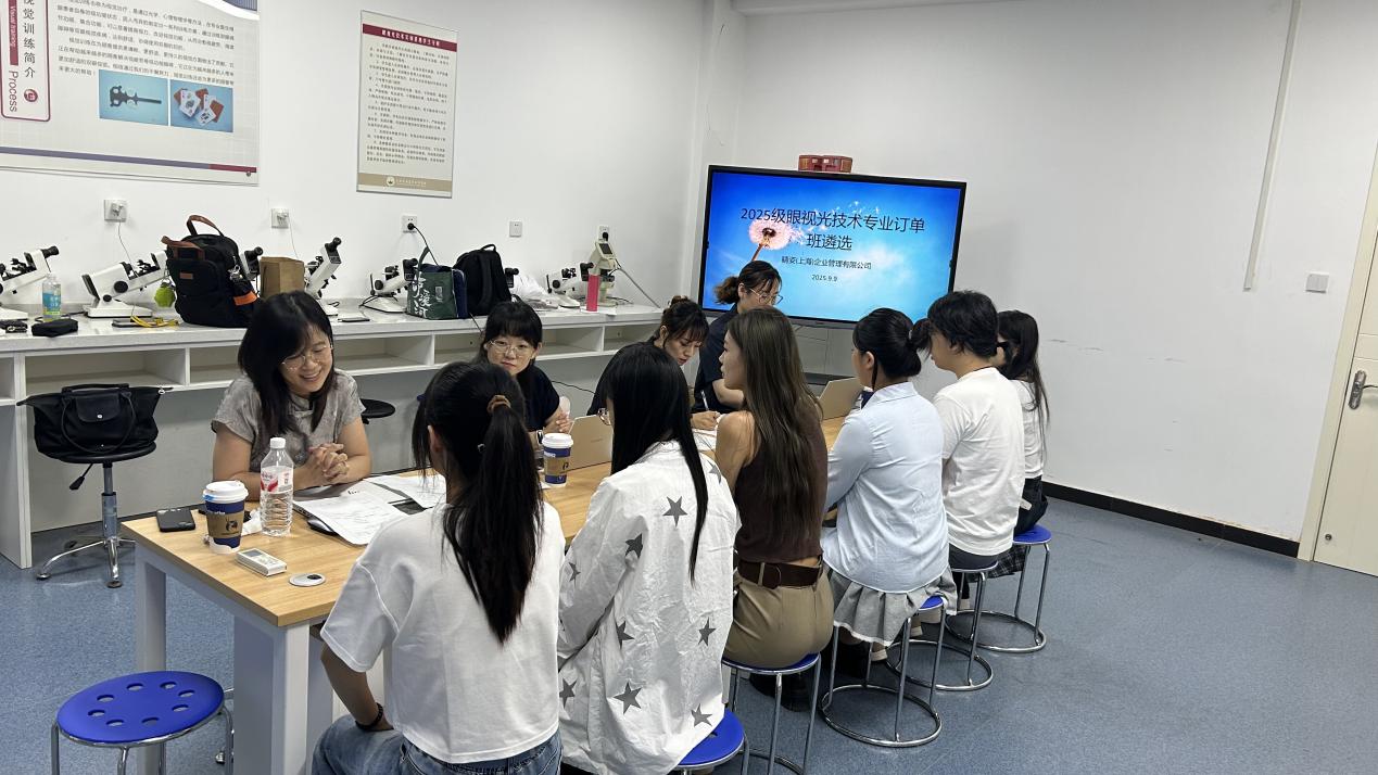 在專業教育后,按照自愿報名、雙向選擇的原則,眼視光技術專業76名新生報名參加2025級"寶島訂單班"和"睛姿訂單班"遴選,最終55名同學入選,接受校企聯合培養的優質資源,具體包括企業導師指導、優先獲得實習機會、企業實習培訓、帶薪實習即入職等。