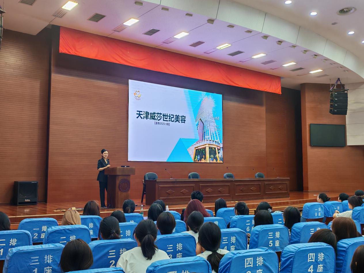 為深化產教融合、校企合作,創新人才培養模式,助力學生精準規劃職業發展,9月9日,天津醫學高等專科學校醫學美容技術專業成功舉辦了2025級新生企業宣講會暨訂單班面試分班活動。本次活動特邀上海美麗田園醫療健康產業有限公司、青島優度海洋生物科技集團有限公司、天津市大美威莎貿易有限公司、廈門藝施投資管理有限公司、天津市美芙坊企業管理有限公司等國內知名企業進校,為新生帶來了行業前沿資訊并與學生進行了深度互動。