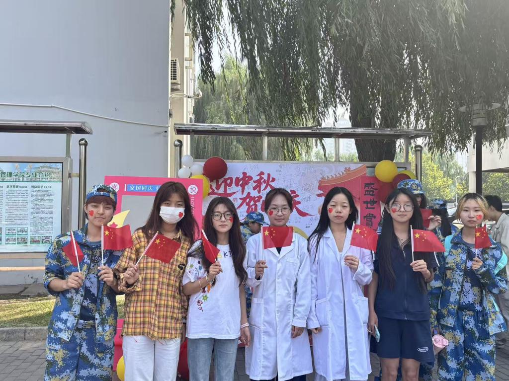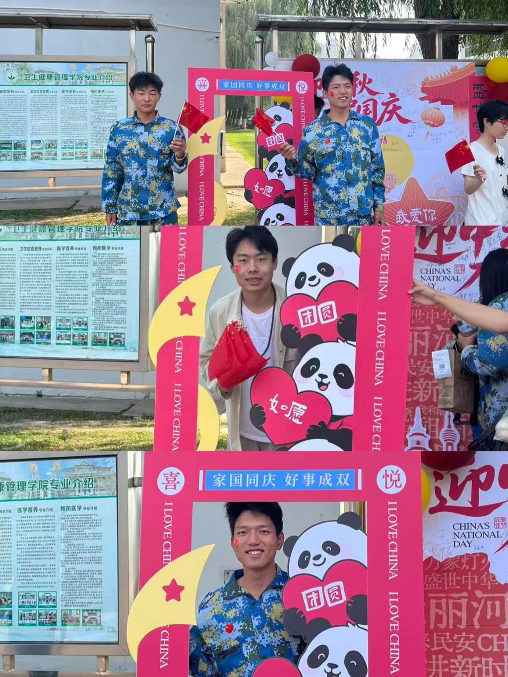 “祝祖國繁榮昌盛!”“青春向黨,強國有我!”“愿山河無恙,國泰民安!”……一句句真摯的祝福,匯聚成醫專學子對祖國母親的深情告白。同學們手持鮮艷的小國旗,臉上貼著心形的國旗貼紙,燦爛的笑容與“中國紅”交相輝映,構成了一幅動人的畫卷。