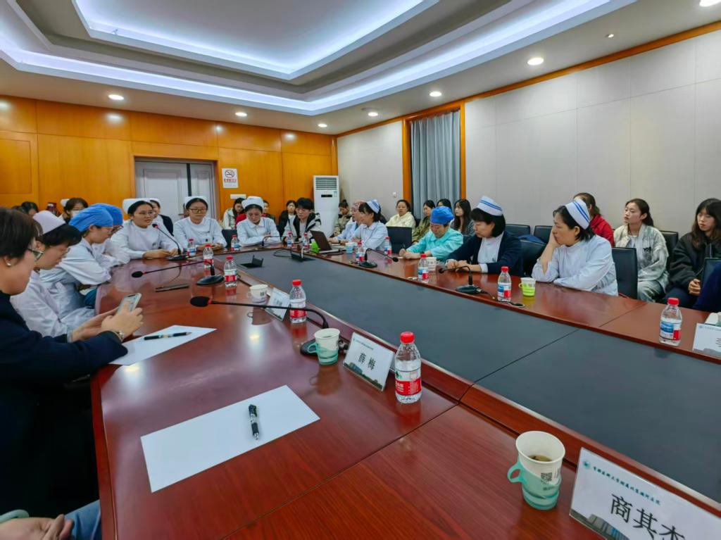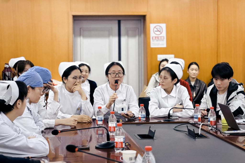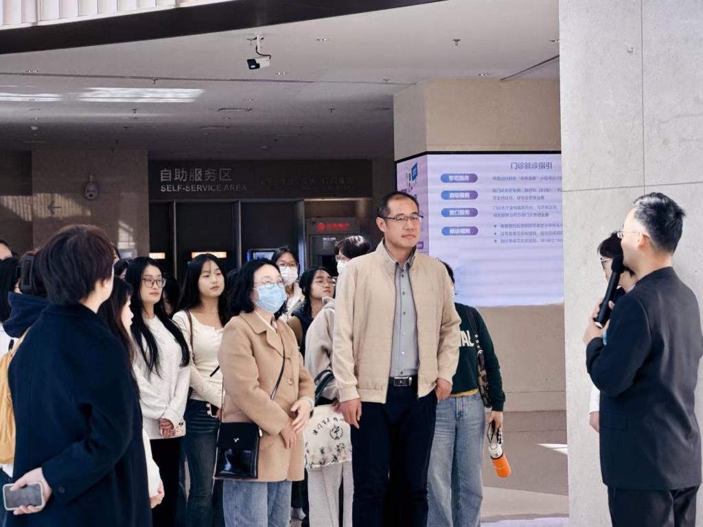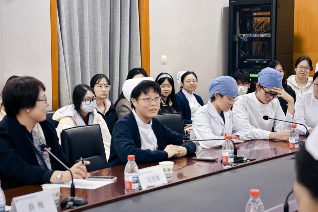 隨后,師生前往一所與我校有多年合作的北京知名醫(yī)院,開展了“黨旗引領(lǐng)促就業(yè) 校院攜手送崗位”校地聯(lián)合主題黨日活動。活動立足區(qū)域健康協(xié)同發(fā)展大局,校院雙方圍繞護(hù)理人才培養(yǎng)進(jìn)行深入探討。校方介紹了創(chuàng)新教育模式與實踐成果,院方結(jié)合臨床實際分享了人才需求與培養(yǎng)建議,實現(xiàn)了人才供給與行業(yè)需求的精準(zhǔn)對接。活動期間,我校近年入職該院的護(hù)理專業(yè)畢業(yè)生作為規(guī)培護(hù)士,與學(xué)弟學(xué)妹們分享了從校園到職場的轉(zhuǎn)變心得、規(guī)培期間的成長感悟以及職業(yè)規(guī)劃建議。畢業(yè)生們表示,醫(yī)院完善的培訓(xùn)體系、嚴(yán)謹(jǐn)?shù)墓ぷ鞣諊透挥心哿Φ膱F(tuán)隊文化,為他們的職業(yè)起步提供了有力支撐。在護(hù)理部領(lǐng)導(dǎo)引領(lǐng)下,師生實地走訪了門診、病房及特色診療科室,深入了解各區(qū)域工作情況,切身感受到醫(yī)院“以病人為中心”的服務(wù)理念和對高品質(zhì)護(hù)理服務(wù)的不懈追求。