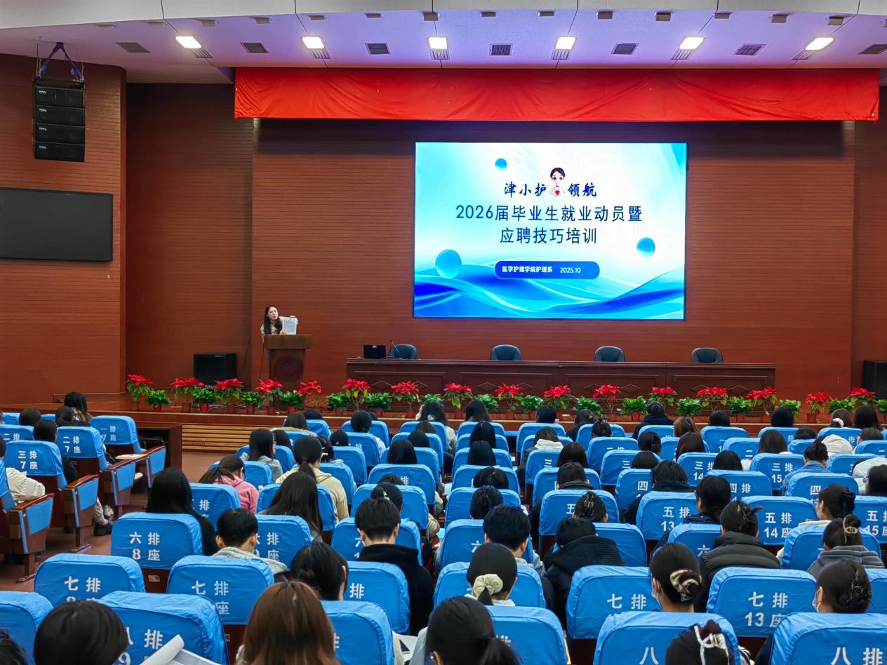為精準賦能護理學子職業發展,有效提升求職競爭力,10 月 31 日,我校護理系啟動 “揚帆啟航” 系列就業指導活動,首場畢業生就業動員暨應聘技巧培訓宣講會順利舉行。本次活動特邀資深行業招聘老師擔任主講嘉賓,圍繞醫療機構的用人標準、護士職業發展路徑及面試核心技巧等關鍵內容,為2026屆畢業生帶來了一場內容豐富的職業發展指導宣講會。