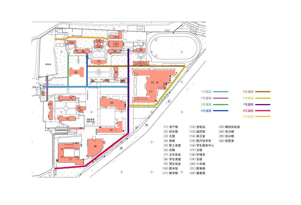 詳見校園示意圖所標示的9條主要道路和19個樓宇(見附件1)