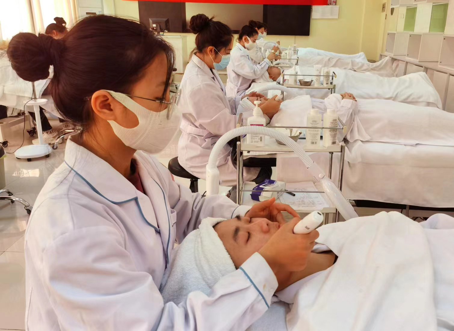 本專業重點面向皮膚健康管理、個人形象管理、形體管理三大領域,構建“醫藝結合、內外兼修、三線并進”分段能力遞進的人才培養模式,實踐“技能先行、理論跟進、分段提升”教學模式。其中,專業核心課有《美容護膚技術》、《美容修飾技術》、《健康體型管理》、《化妝造型實用技術》、《醫學美容造型藝術與設計》、《物理因子美容技術》。