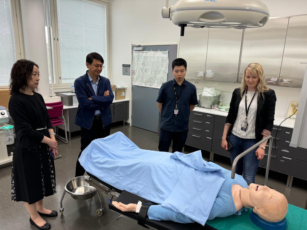 為全面加強我校國際交流與合作水平,引入歐洲發達國家護理專業課程,提升學校國際影響力,推動教育部認證的3+0模式合作辦學項目,應芬蘭東南應用科技大學(South-Eastern Finland University of Applied Sciences)邀請,我校副校長郝建軍、實訓中心主任景文莉、護理專業教師苑晶晶和國際教育學院教師詹少凡一行4人于2024年6月17日至2024年6月21日,訪問芬蘭。本次出訪,洽談了護理專業合作辦學的細節并參觀米凱利校區、當地學生合作及實習醫院、養老院等,同時圓滿完成協議簽署等事宜。